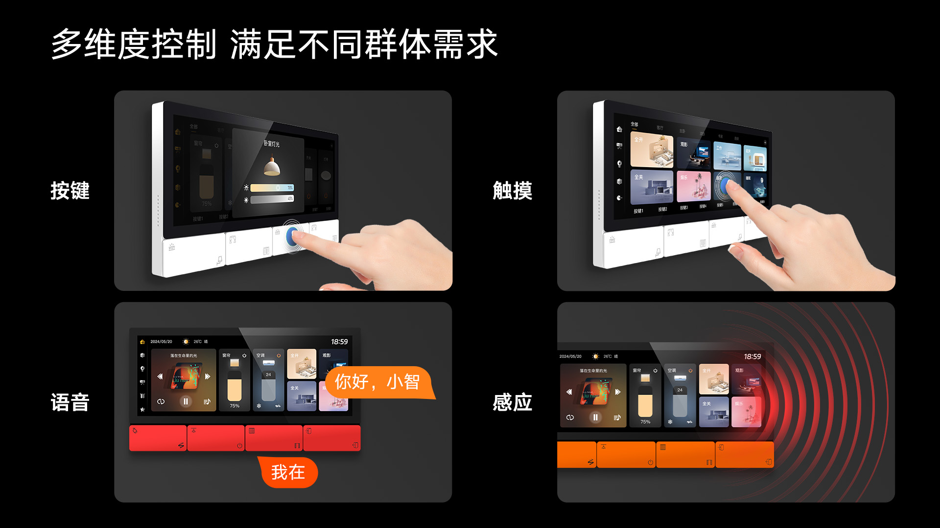 總有一種方式懂你!為滿足不同群體的多樣化使用需求,我們打造了多維度控制方式。南爾智能F5創(chuàng)新打造[按鍵、觸摸、語音、感應(yīng)]四位一體交互矩陣,無論是追求傳統(tǒng)操作的熟悉感,還是向往未來科技的智能感,而且都能暢享高效便捷的家居操控。